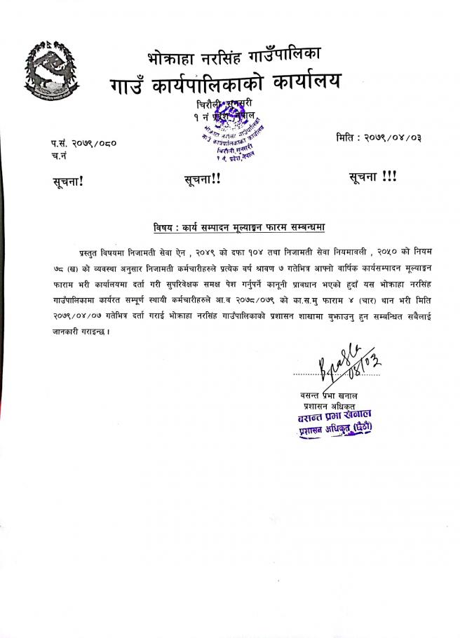 कार्य सम्पादन मूल्याकंन फारम सम्बन्धमा ।