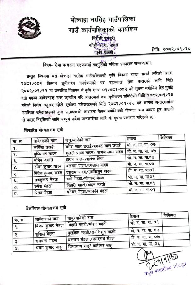 » नतिजा प्रकाशन सम्बन्धमा ।